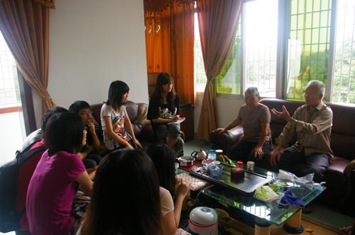 本次走访的是一位出身贫农、曾任农村信用社社长的现年78岁的退休老党员林元贞。成长在九口之家的林爷爷在19岁入了团,20岁就入了党。他热情地为讲解了在大生产时期、抗日战争时期以及人民公社化时期的亲身经历。曾经担任农村信用社社长的林爷爷,指出作为领导应政治端正,工作积极负责,富有责任心。讲到激动是,林爷爷还用并不流利的普通话进行交谈。