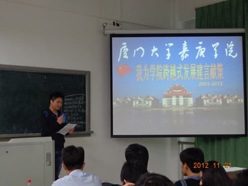 11月21日,土木工程系学生党支部在主楼群四号楼207教室召开民主生活会,开展“我为学院跨越式发展建言献策”活动。该活动是学院党委根据新学年伊始王瑞芳院长提出的“解放思想,凝心聚力,大力推进学院新一轮跨越发展”这一主题思想,号召全院党支部开展的建言献策活动。