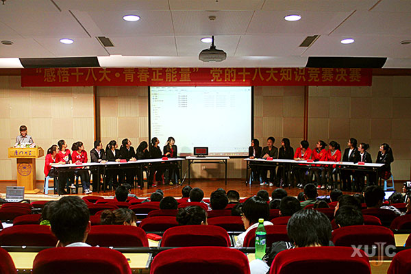 12月21日晚,“感悟十八大,青春正能量”党的十八大知识竞赛决赛在主楼群3号楼小报告厅开赛。物流管理系以最终得分160分夺得一等奖。会计系和国际经贸系获二等奖,财政金融系、法学院和人文与传播学院获三等奖。