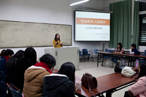 为增强女同学的防身能力,1月9日晚,日语系学生党支部在主楼群四号楼309教室举办了一场以“防身有术,六招到手”为主题的女子防身术教学体验活动。本次活动包括遇袭案例分析和防身术体验两个环节,出席活动的不仅有日语系学生,还吸引了部分外系学生。