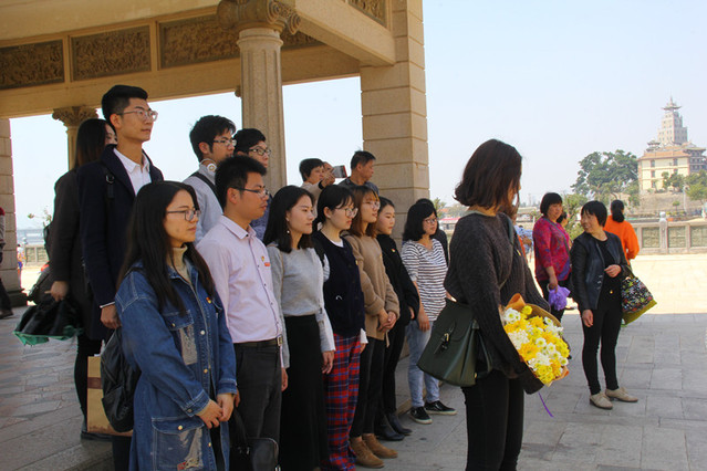 9点半左右,艺术设计系的党员同志们到达了鳌园。鳌园中一幅幅的浮雕,无不展示出陈嘉庚先生无私的教育精神。党员同志们相互进行了讨论,联系已有对陈嘉庚先生的了解,从大教育家的角度,思考陈嘉庚先生当年的出发点,辨析自己思想行动上的问题。