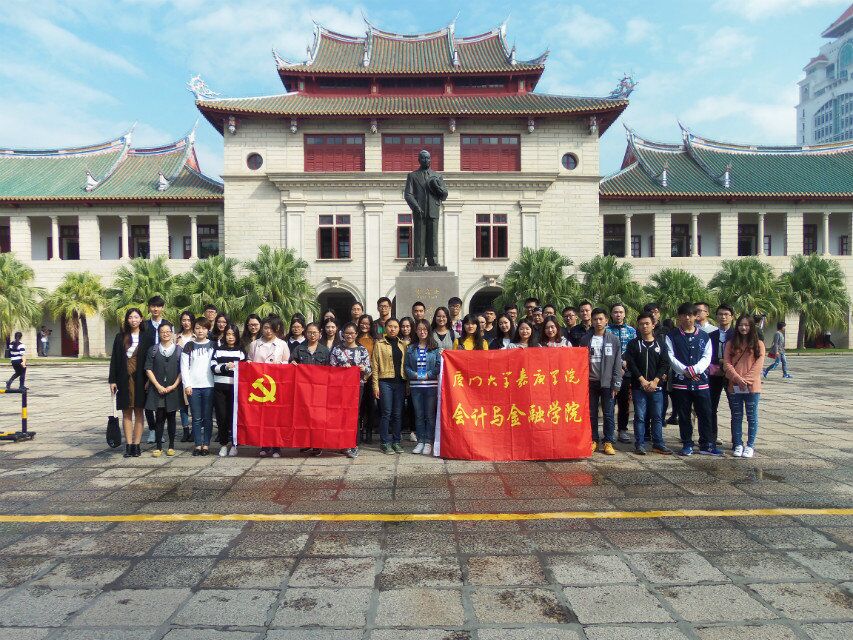 最后,金融学专业学生联合第一党支部积极分子及党员在陈嘉庚像前合照留念,本次活动落下帷幕。