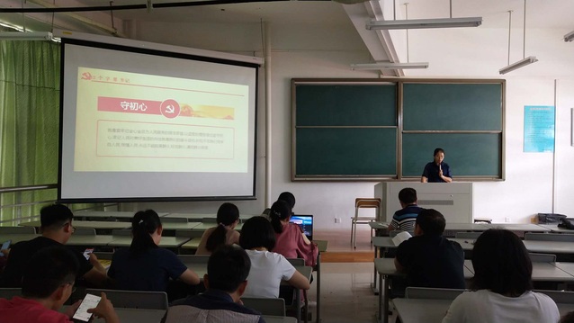 信息科学与技术学院教工第二党支部周朝霞、于杰和李海波同志为在座党员讲了一堂题为“学习习近平总书记在‘不忘初心、牢记使命’主题教育工作会议上重要讲话”的微党课。“不忘初心、牢记使命”主题教育工作会议于5月31日在北京召开,中央政治局七位常委集体出席。周朝霞同志带领各位党员重温总书记在会上的讲话及会议精神,她强调党员们要做到“守初心、担使命、守党性”,团结群众、勇于担当,才能成为一名合格的、坚强的共产党人。