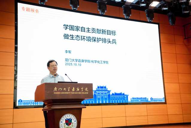 近日,党委常务副书记李军教授在公共教学楼一号楼101多功能厅为环境科学与工程学院师生讲授2025年秋季学期“开学第一课”。环境科学与工程学院院长卢昌义和300余名师生共同聆听授课。授课由环境科学与工程学院党总支书记周亮主持。