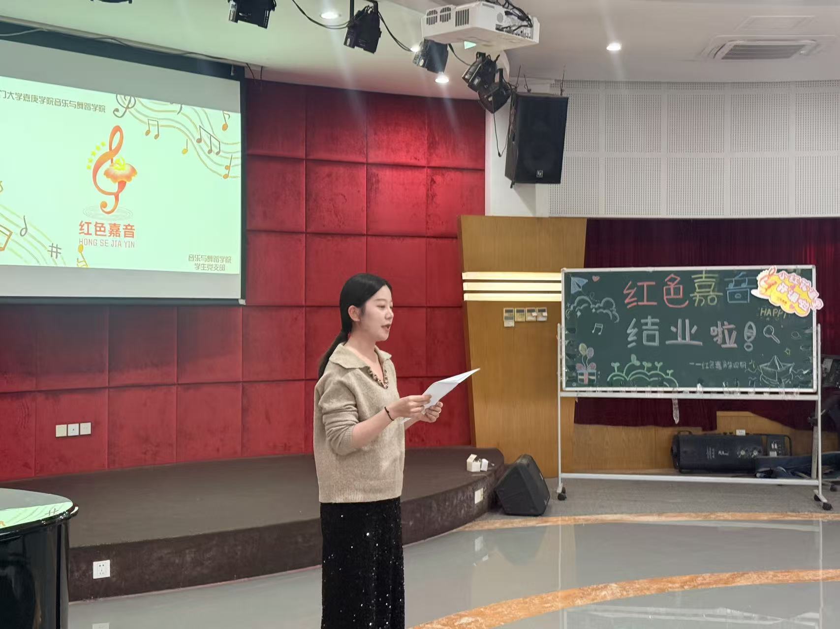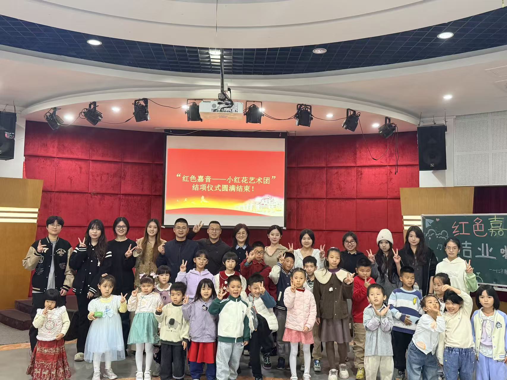 2025年12月21日下午,由厦门大学嘉庚学院工会联合音乐与舞蹈学院学生党支部、石坑社区共同开展的品牌立项活动“红色嘉音———小红花艺术团”第四期结项汇演在学生活动中心举行。