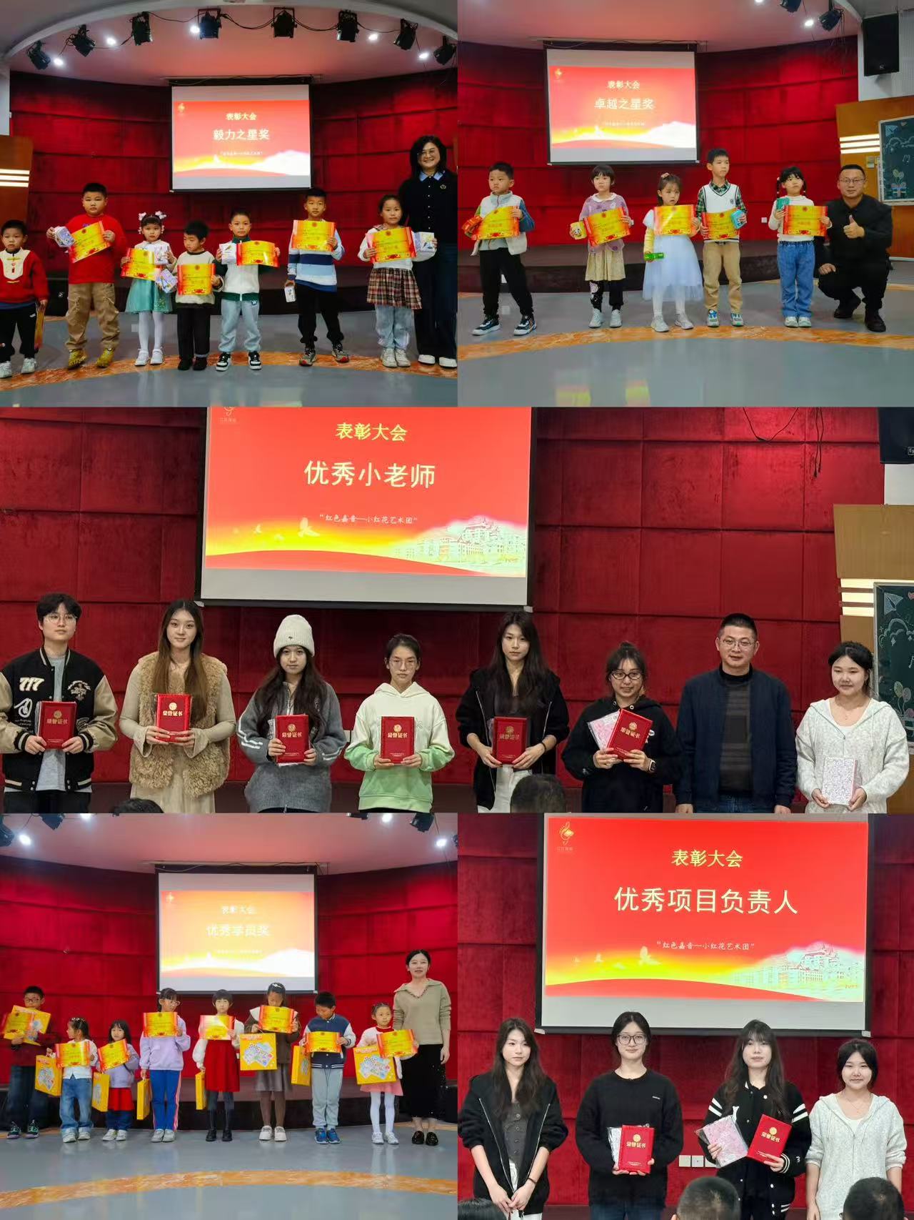 为激励学员进步、肯定团队付出,本次活动设立了“优秀学员奖”、“毅力之星奖”、“卓越之星奖”,并为项目学生党员与骨干颁发了“优秀小老师奖”与“优秀项目负责人奖”。奖项的设置旨在全方位鼓励学员在艺术学习与个人品格上的成长,同时表彰项目团队在组织教学、服务奉献中的先锋模范作用。获奖代表从嘉宾手中接过证书与纪念品,收获了一份认可,更承载了一份期许。