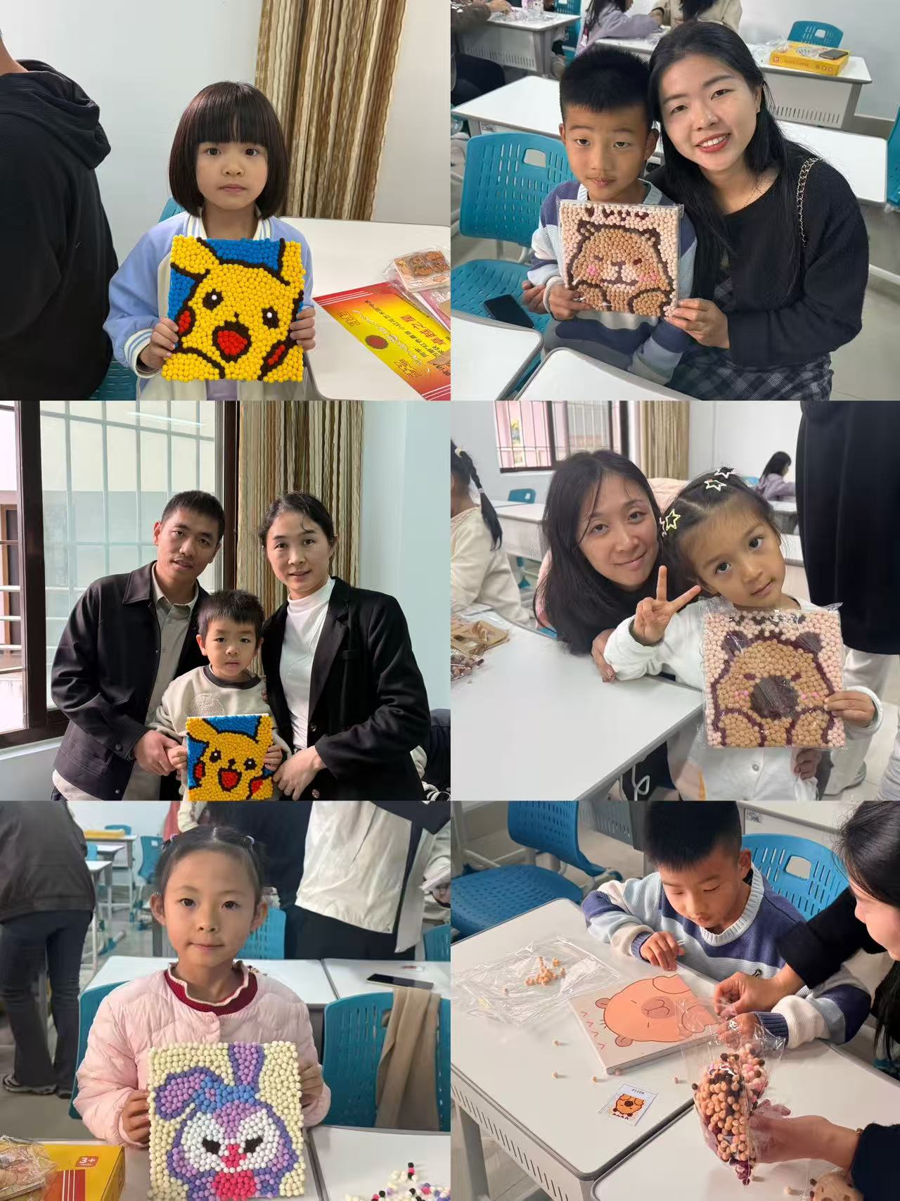 为深化美育实践的家庭与社会参与,现场还设置“DIY毛球画”创意手工环节。在志愿者的引导下,学员与家长共同创作,秩序井然、互动温馨。活动不仅锻炼了孩子的动手与审美能力,也增进了亲子情感,将美育从课堂延伸至更广阔的生活场景。