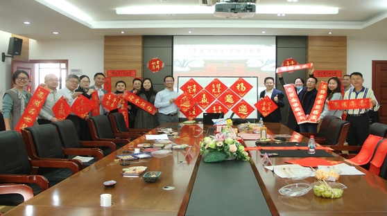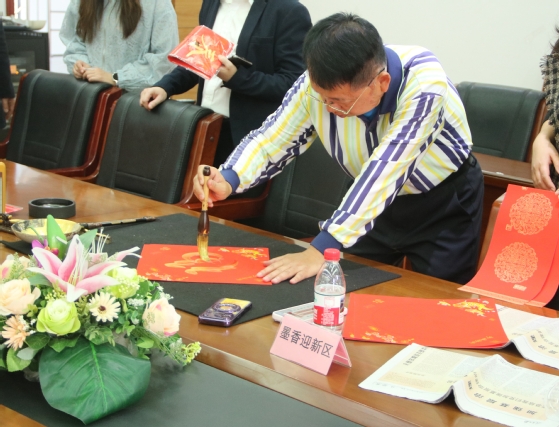 元旦红色书画会为国际商务学院和孵化工会的教师们提供了一次放松的机会,通过这次活动,大家对彼此也有了更深的了解与认识。在贴满“福”字与对联的会议室里,教师们分几区参与了形式多样的趣味活动:现场写春联和方斗、琉璃串珠、新春剪纸、有奖问答现场洋溢着喜庆祥和的节日氛围,新春气息无处不在。