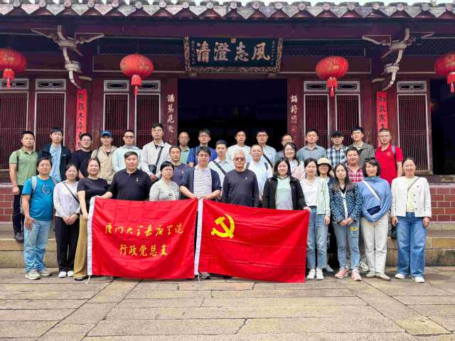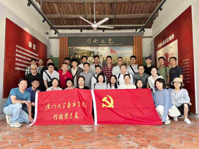 作为专项行动落实举措之一,5月11日,行政党总支组织开展“学思践悟八项规定,寻访安溪红色印记”主题党日活动,组织党员走进阆湖博物馆、李光地故居、安南永德苏维埃政府旧址、莫耶故居等地参观学习、聆听微党课,沉浸式追溯红色历史,感悟廉洁文化,锤炼党员党性修养,并结合查摆问题改进措施,增进各支部党员间交流合作,增强服务意识、改进工作作风。嘉庚学院副院长王冬梅,关工委常务副主任林瑞榕,各行政部门干部、党员代表近40人参加活动。